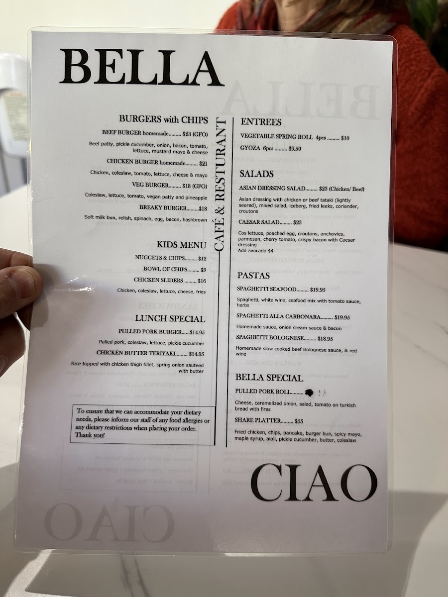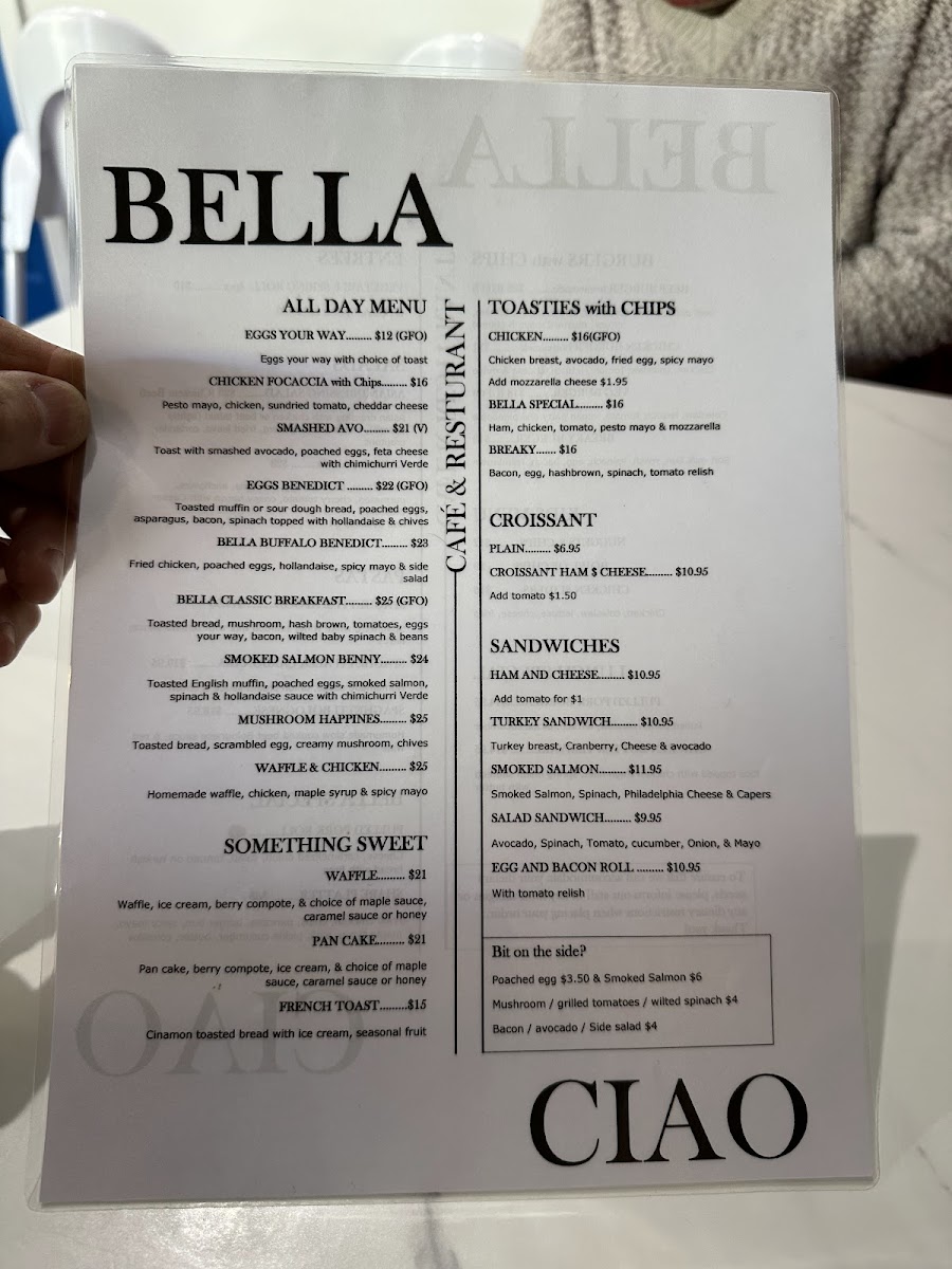 Bella Ciao Cafe Menu